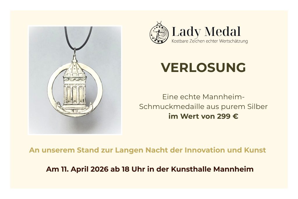Für LadyMedal ist dieser Abend mehr als ein Termin. Er ist eine Einladung: unsere Schmuckmedaillen als das zu zeigen, was sie sind – Ausdruck von Form, Persönlichkeit und Atmosphäre. Stücke, die nicht nur schön sind, sondern eine Geschichte tragen. Individuell. Hochwertig. Mit Charakter.
