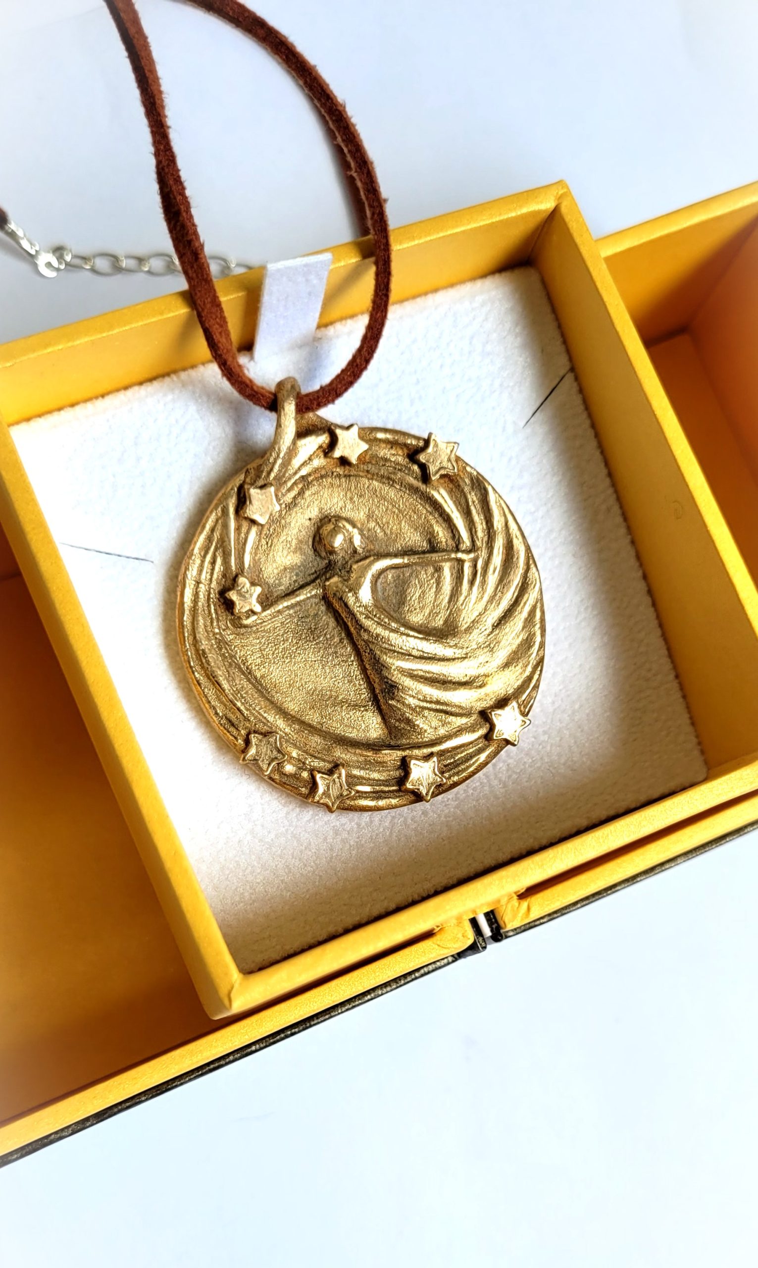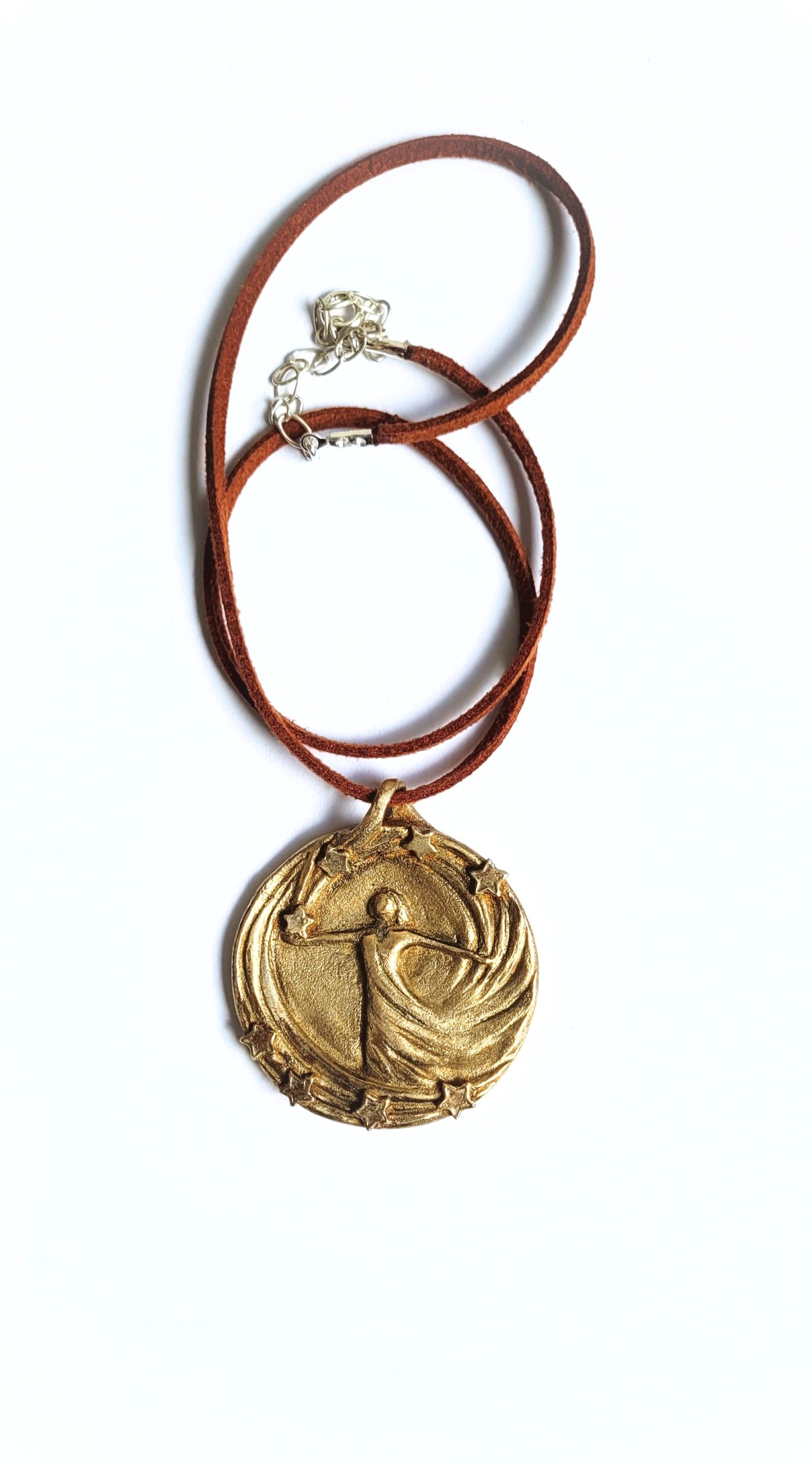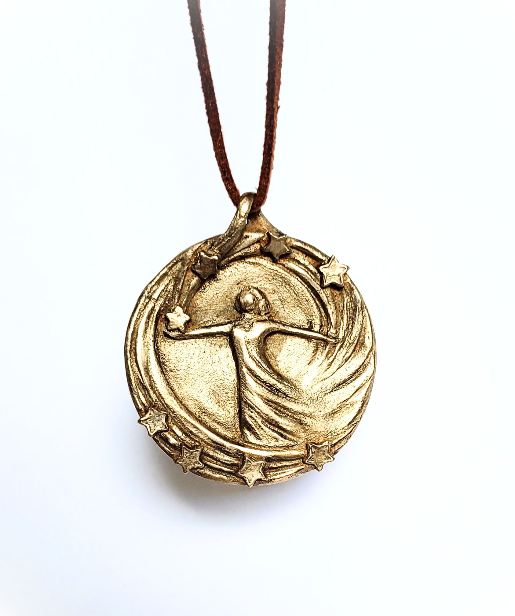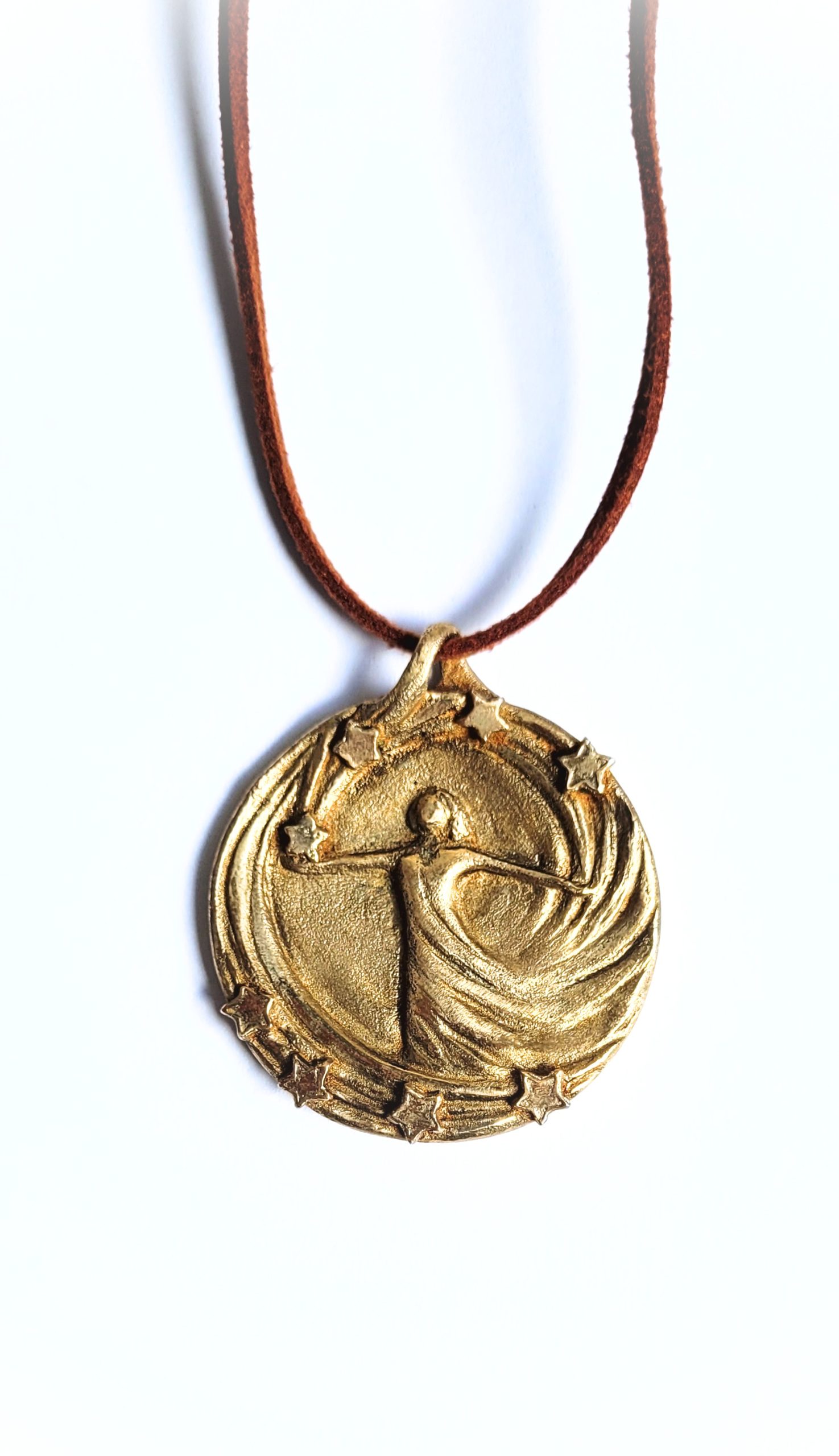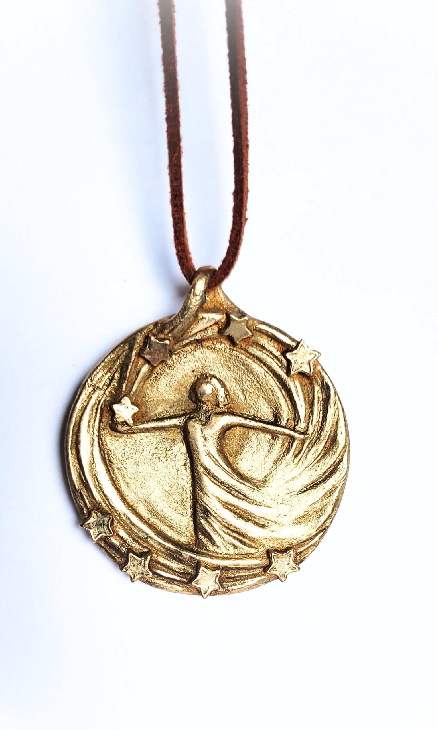 1 Schmuckmedaillen‑Anhänger aus Bronze mit tanzender Figur und Sternenkranz