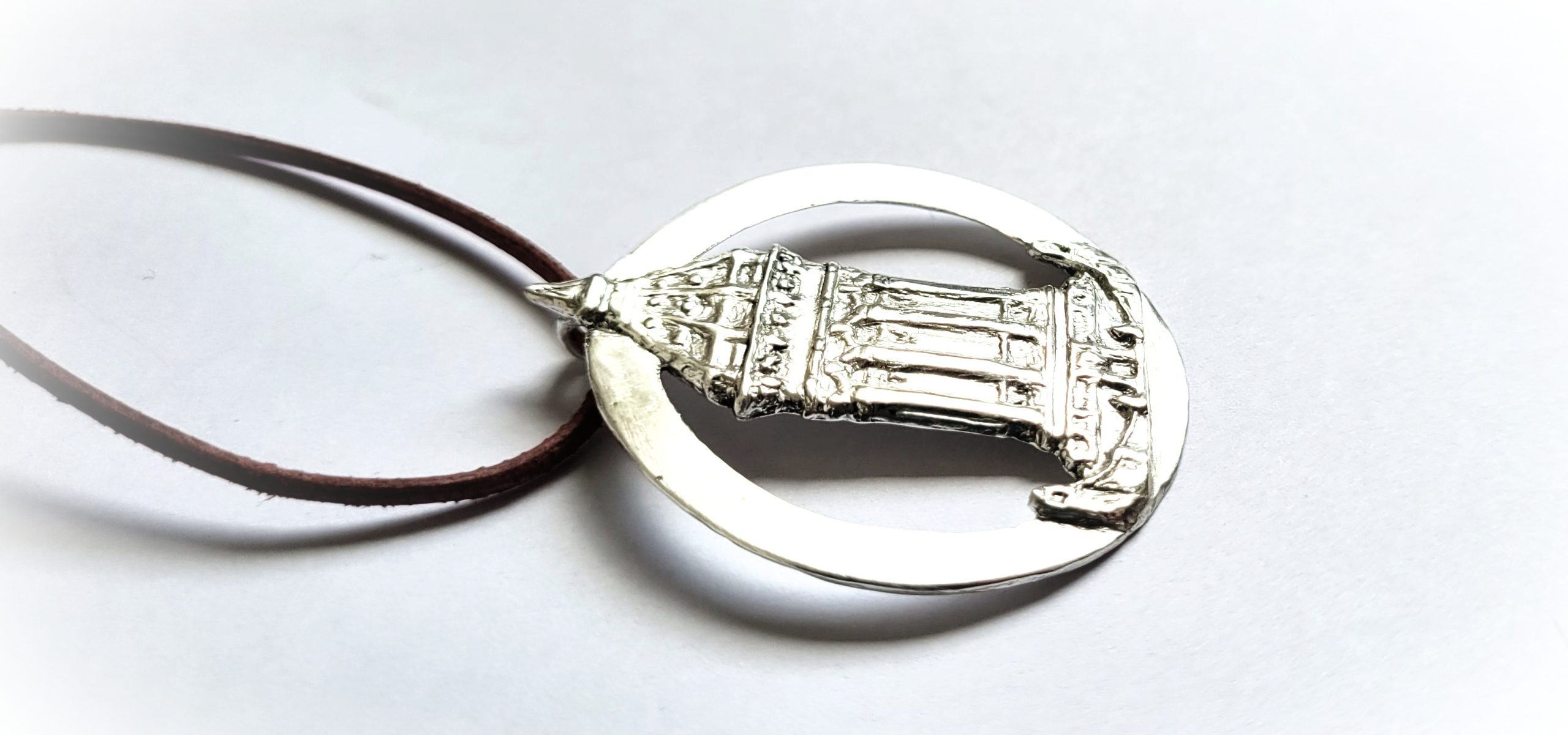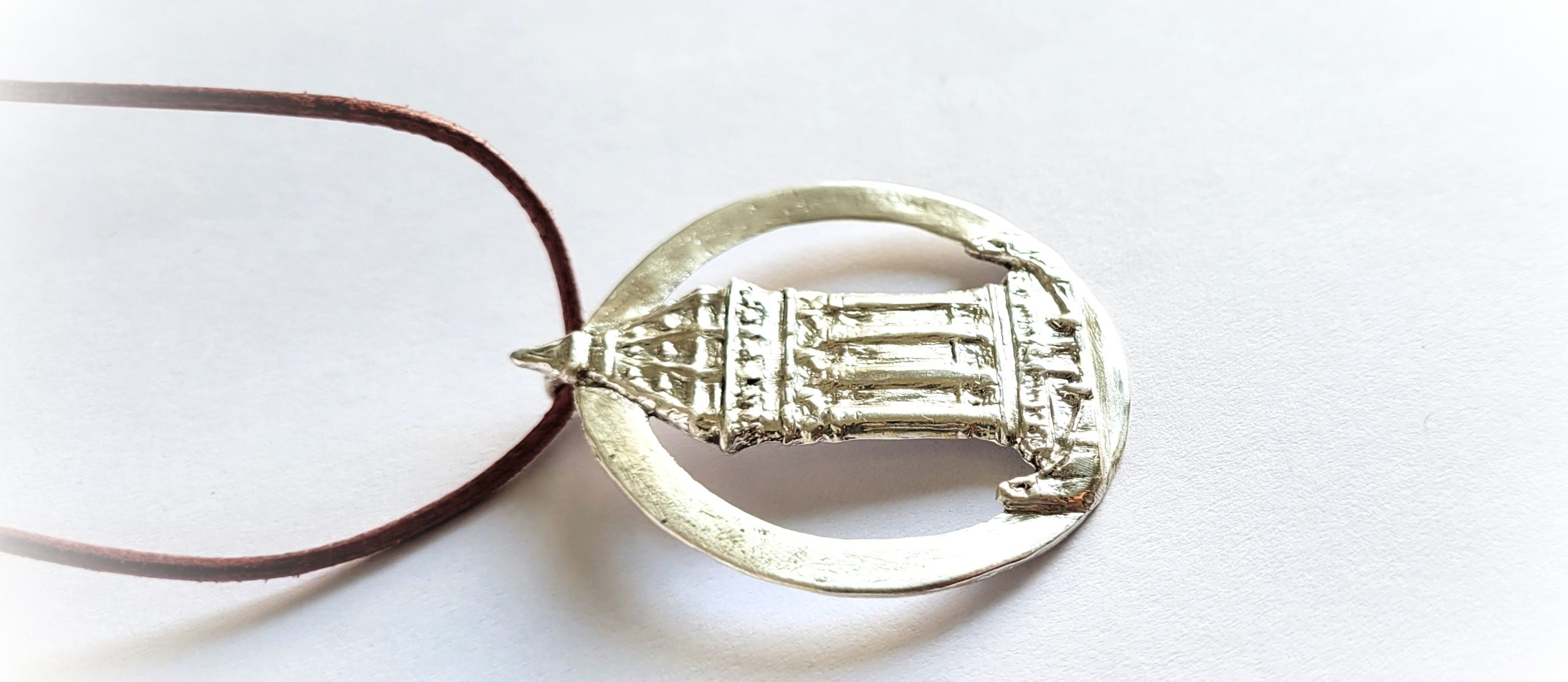 - 1 Wasserturm‑Medaillen‑Anhänger aus 999er Feinsilber