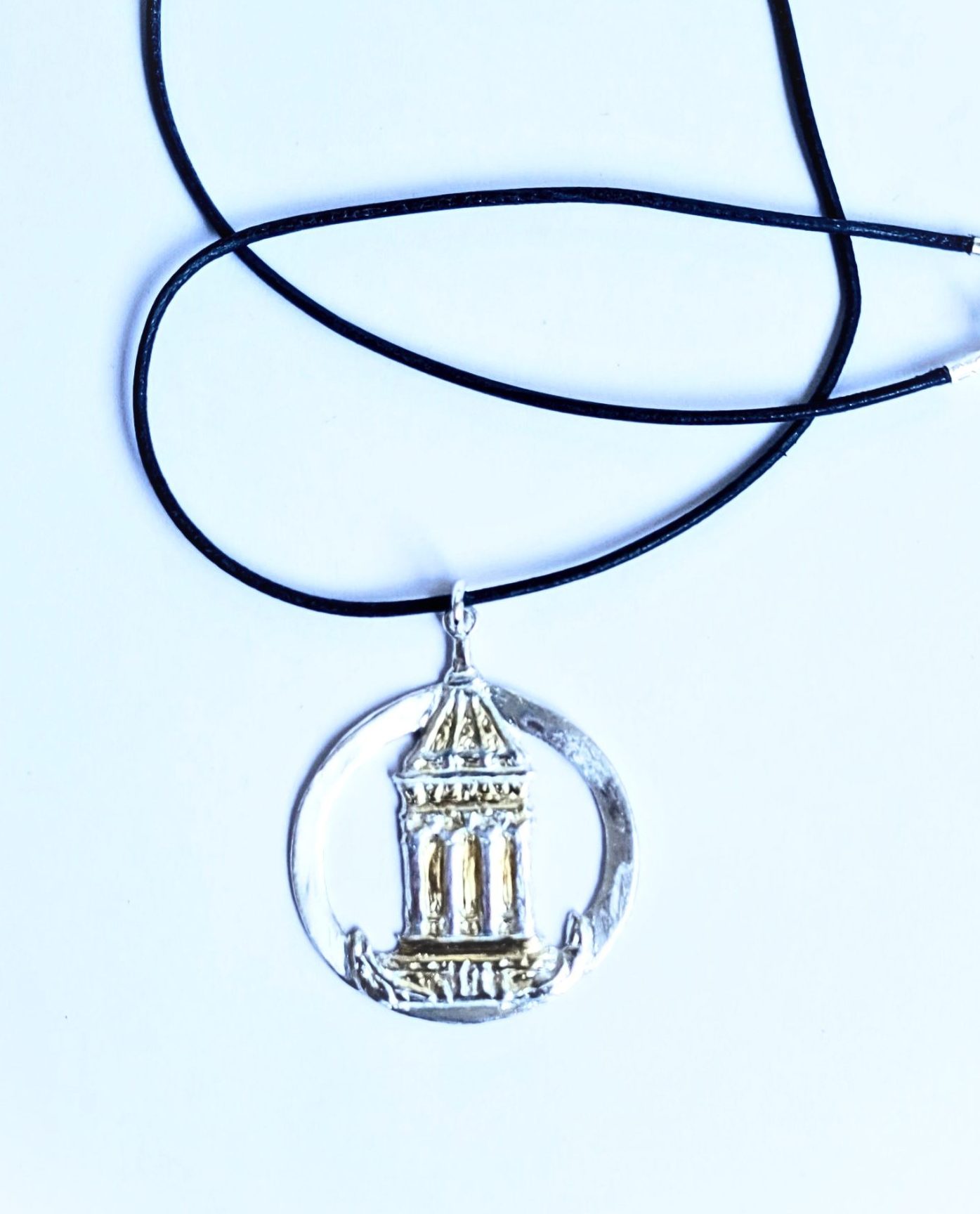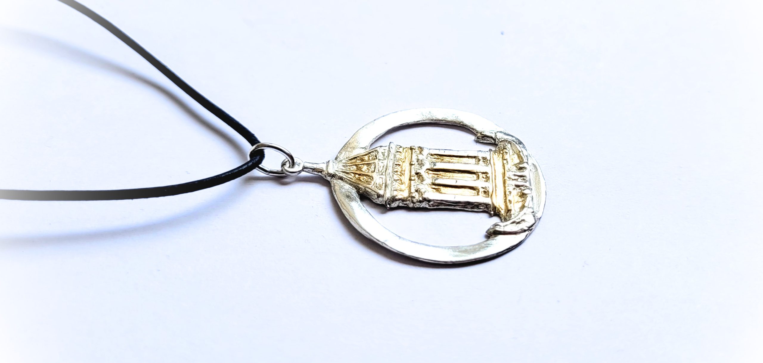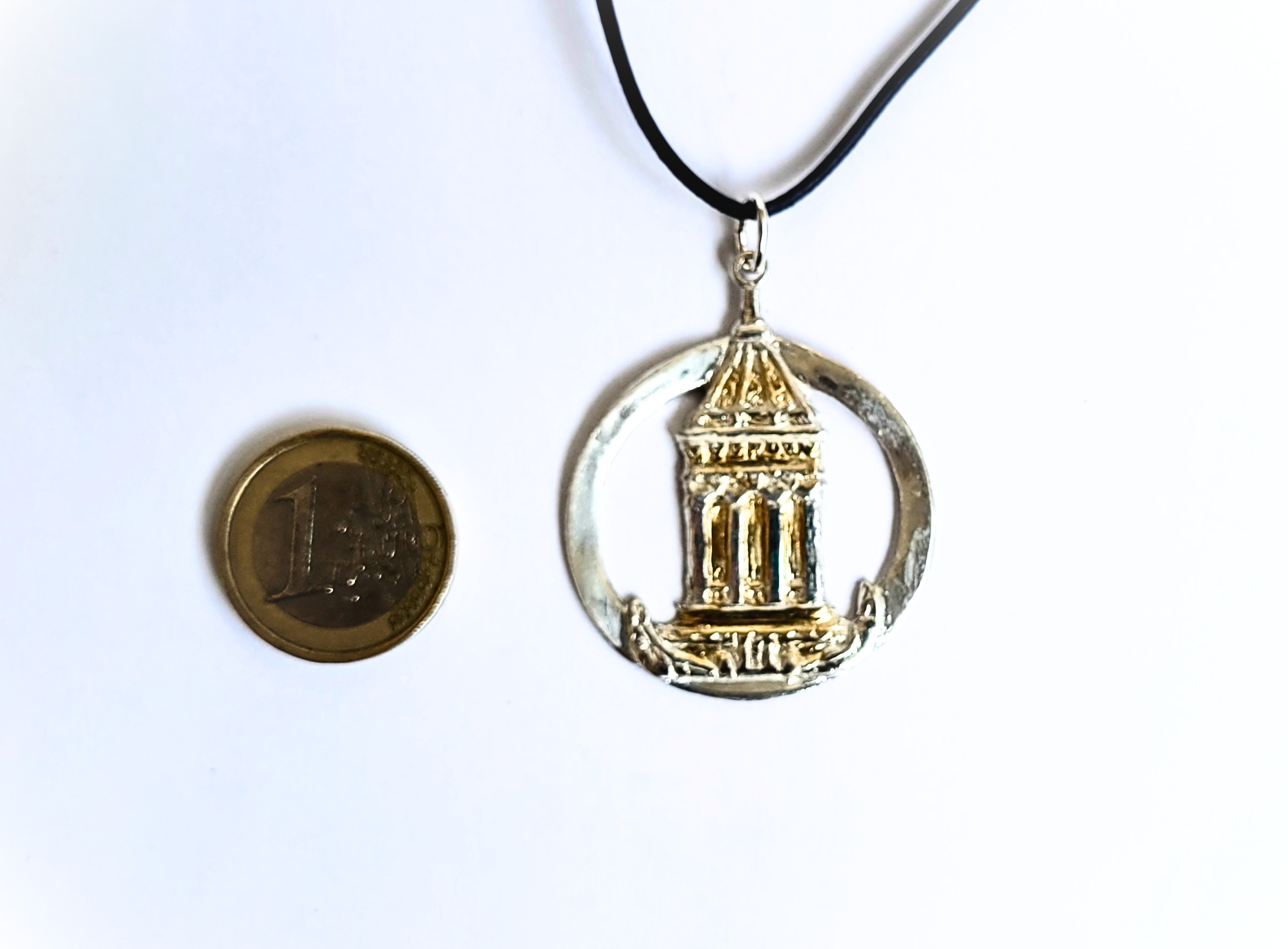 - 1 Wasserturm‑Medaillen‑Anhänger aus 999er Feinsilber, teilvergoldet mit 24K Gold