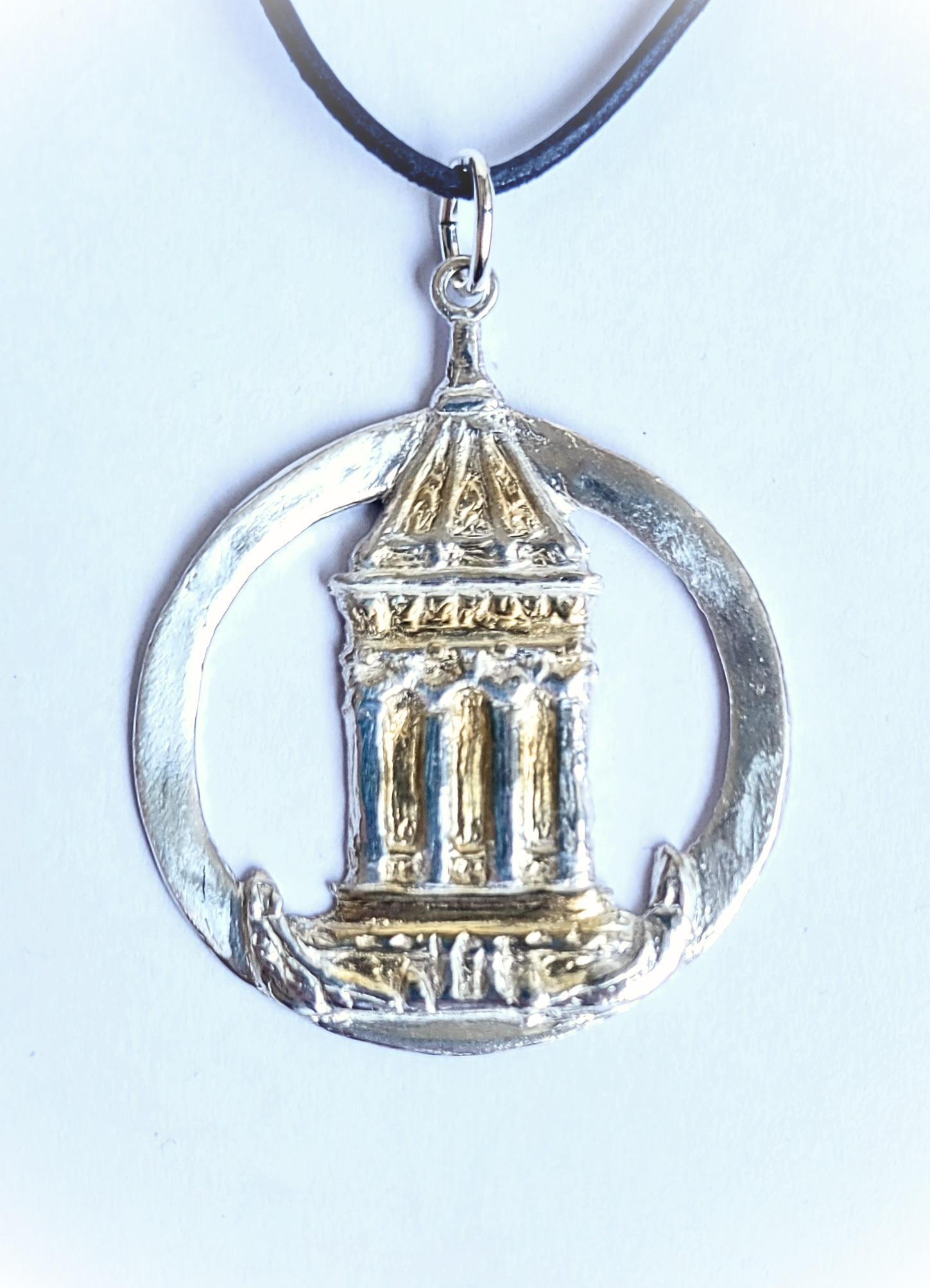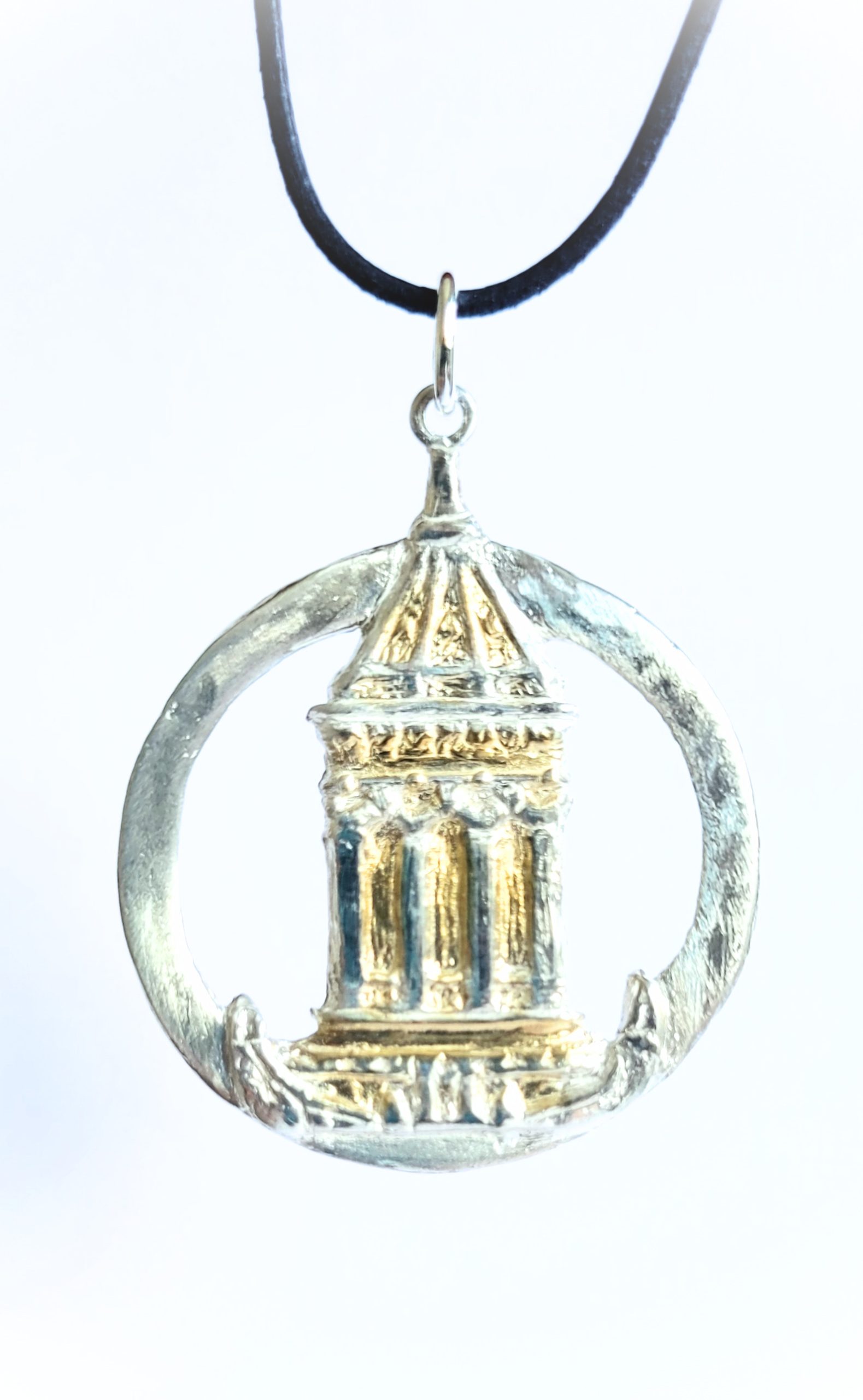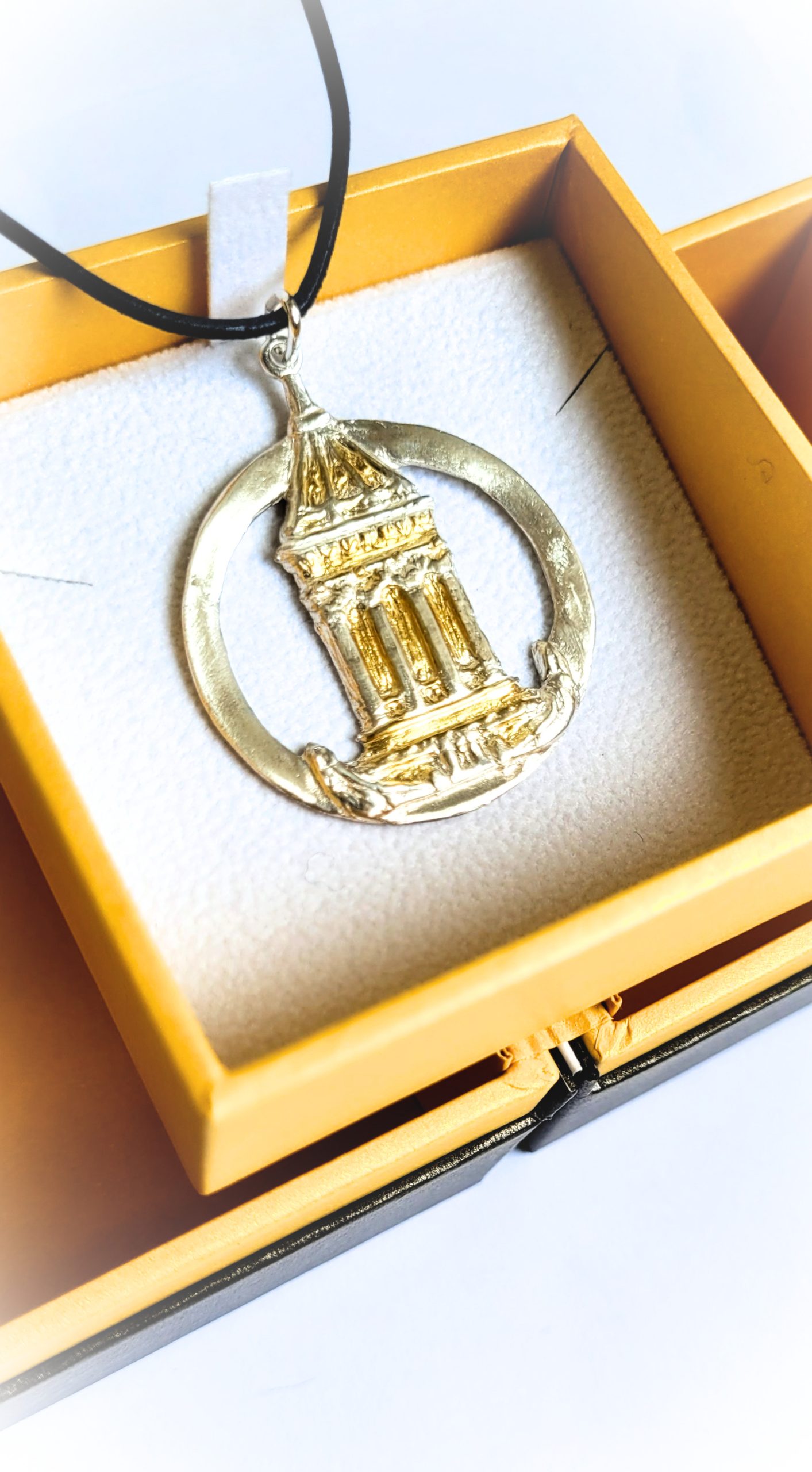 - 1 Wasserturm‑Medaillen‑Anhänger aus 999er Feinsilber, teilvergoldet mit 24K Gold